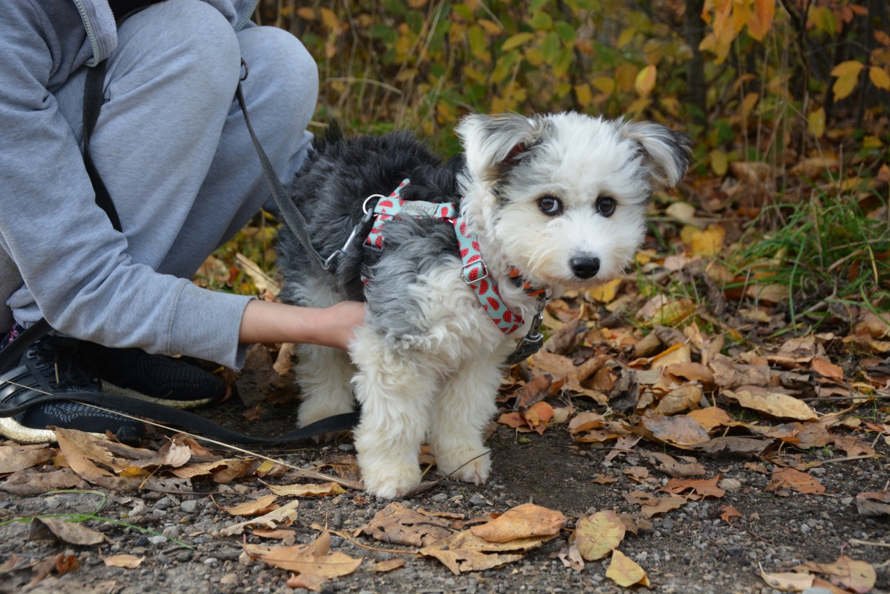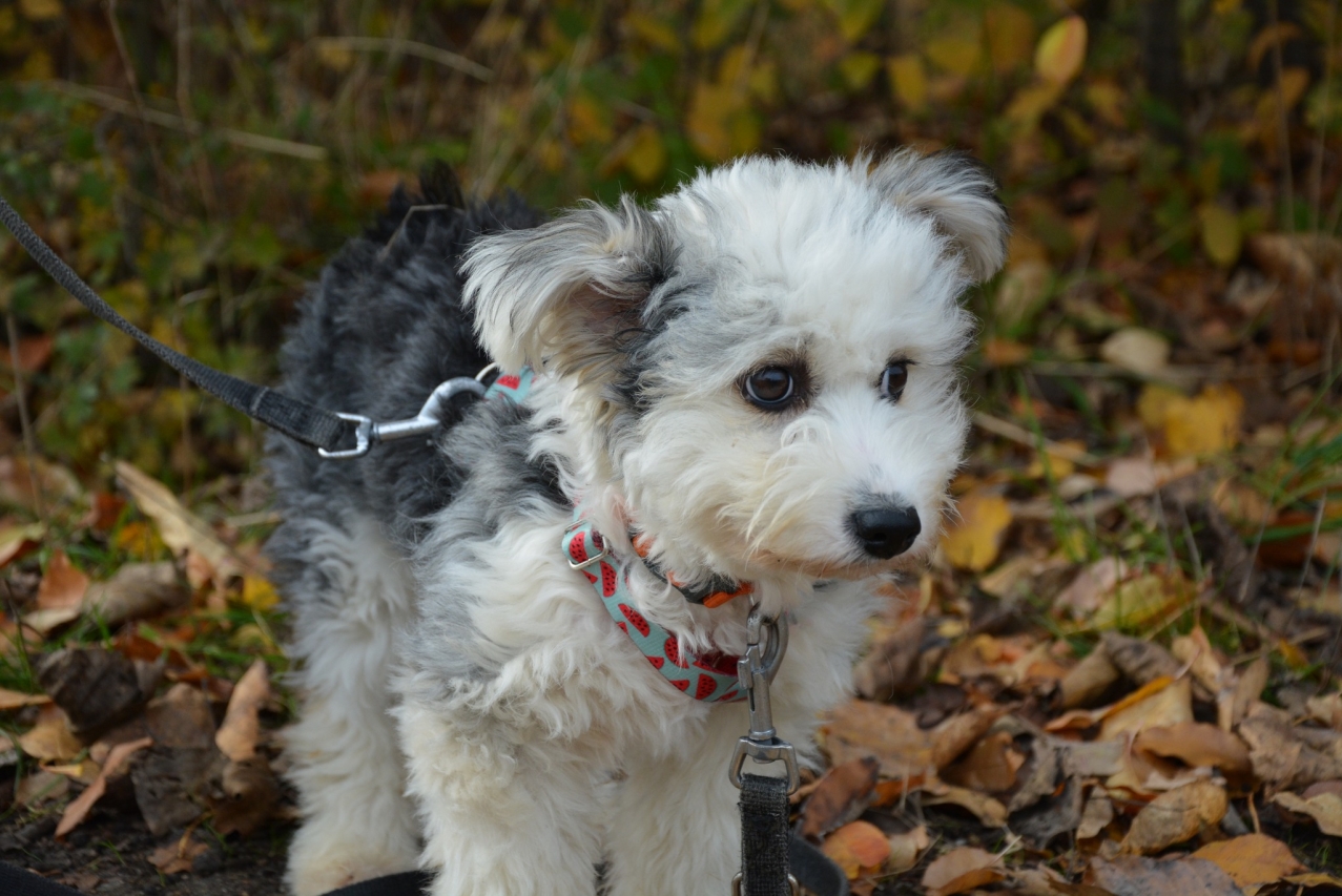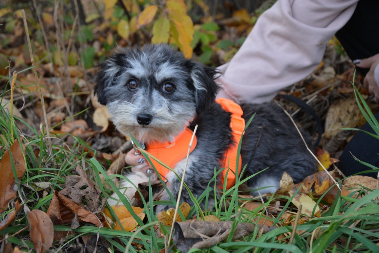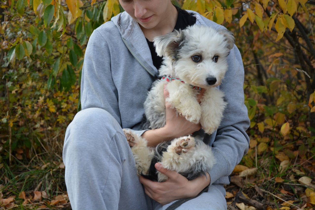 Lena, jasna, delikatna sunia przypominająca mix pudla i sznaucera, ma około 2 lat. Jej synek Milo jest ciemniejszy, młodziutki - ma może rok, może trochę mniej. Są drobni, nieśmiali i bardzo związani ze sobą - tylko razem czują się bezpiecznie.