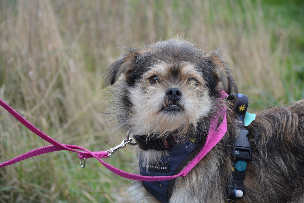 Z założeniem obroży i szelek nie ma problemu. Szukamy najlepszego, ciepłego domu dla Okruszka. Takiego, który już nigdy, przenigdy go nie porzuci. Mały, radosny Okruszek zasługuje na to, żeby być pełnoprawnym członkiem rodziny.