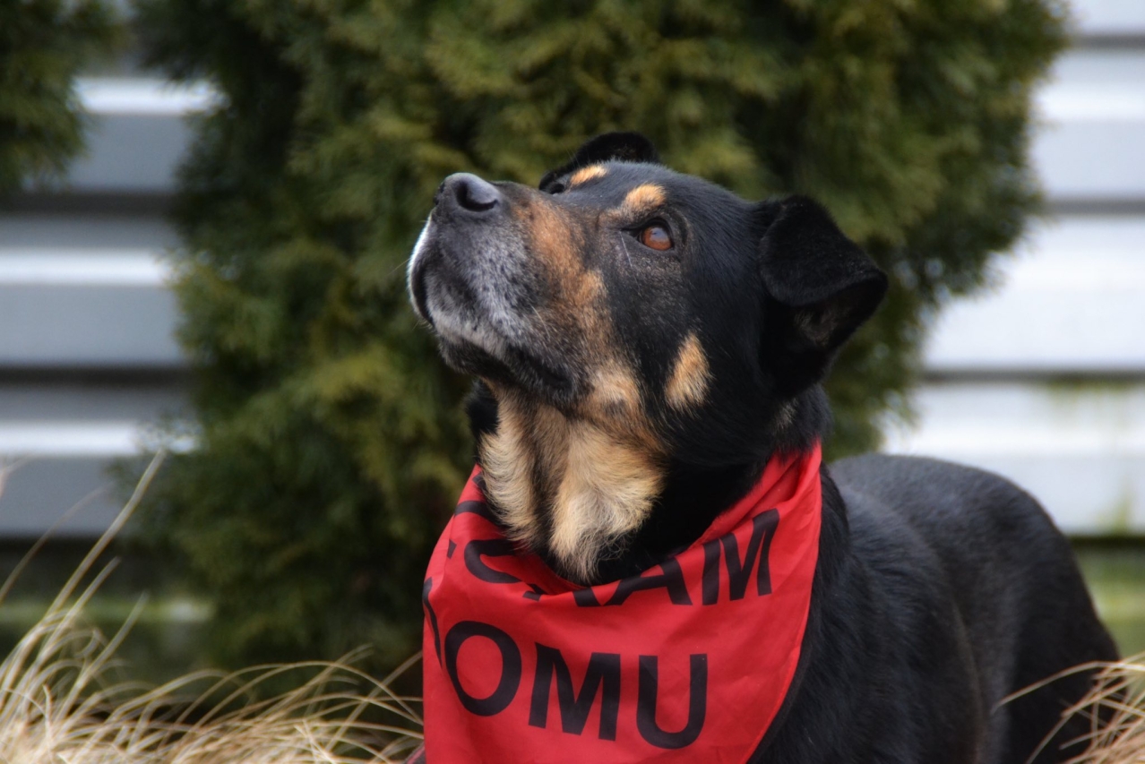 Bardzo wspiera się na człowieku. Trudno mu w schronisku - jest przytłoczony sytuacją, czuje się niepewnie.