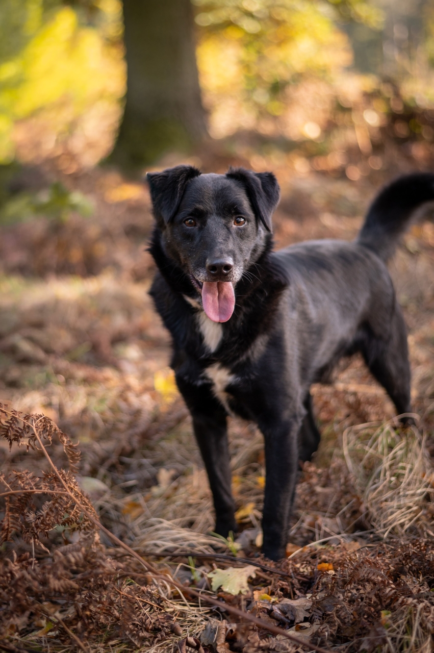 Zulus jest młodym dorosłym psem średniej wielkości. Znak rozpoznawczy - piękne, błyszczące czarne futerko i elegancki biały krawacik.
