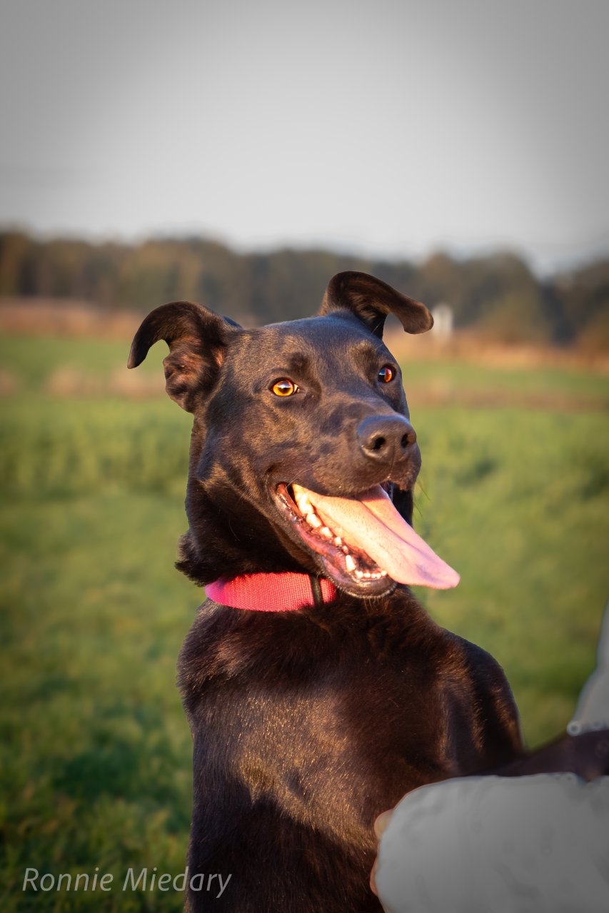 Ronnie to piękny, duży samiec w typie owczarka o wadze około 30 kg. Jego wiek szacujemy na 2-4 lata, co oznacza, że jest to młody dorosły pies, który wciąż tryska młodzieńczą energią, chęcią do zabawy i pasją do eksplorowania świata. Ronnie jest intensywnie zorientowany na człowieka: na spacerach orbituje wokół swojego przewodnika, a gdy tylko się zatrzymasz, natychmiast przybiega, by upomnieć się o porcję uwagi i pieszczot. Choć jego przeszłość jest nieznana, ma w sobie ogromne pokłady zaufania, którymi obdarza ludzi już od pierwszej chwili, jakby znał ich latami. Jest niezwykle łakomy na smaczki, co czyni go bardzo podatnym na naukę - przy odpowiedniej motywacji i konsekwencji chętnie zrobi wszystko, by zadowolić swojego przewodnika. Do innych psów podchodzi niechętnie, powinien pozostać psim jedynakiem. Poszukujemy dla niego odpowiedzialnego domu, w którym nowi właściciele są gotowi zapewnić mu odpowiednią dawkę ruchu i pracy umysłowej. Jeśli marzysz o psie, który będzie biegał u Twojego boku, a potem otuli Cię swoim ciepłem - Ronnie czeka właśnie na Ciebie.