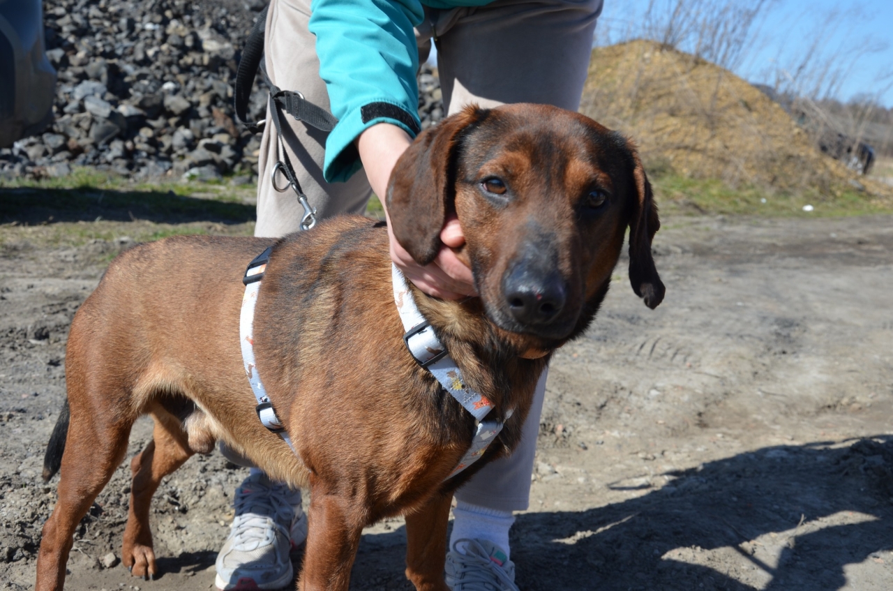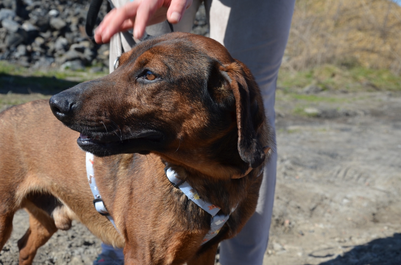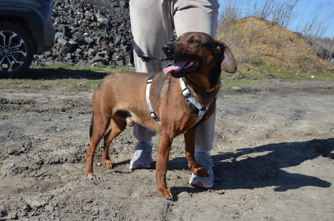 Bursztynowy słodziak o imieniu Carlos (Karlos). Jest dosyć młodym psem, szacujemy jego wiek na 3-4 lata. Trochę przypomina posokowca, waży 15-20 kg i śmiało można go określić psem średniego rozmiaru.