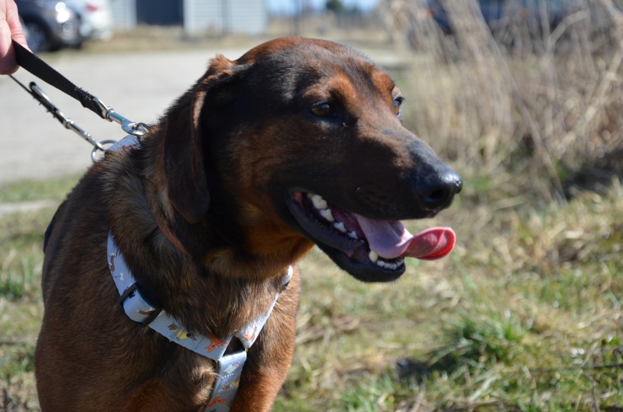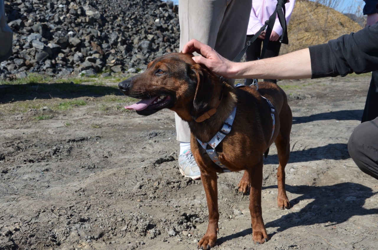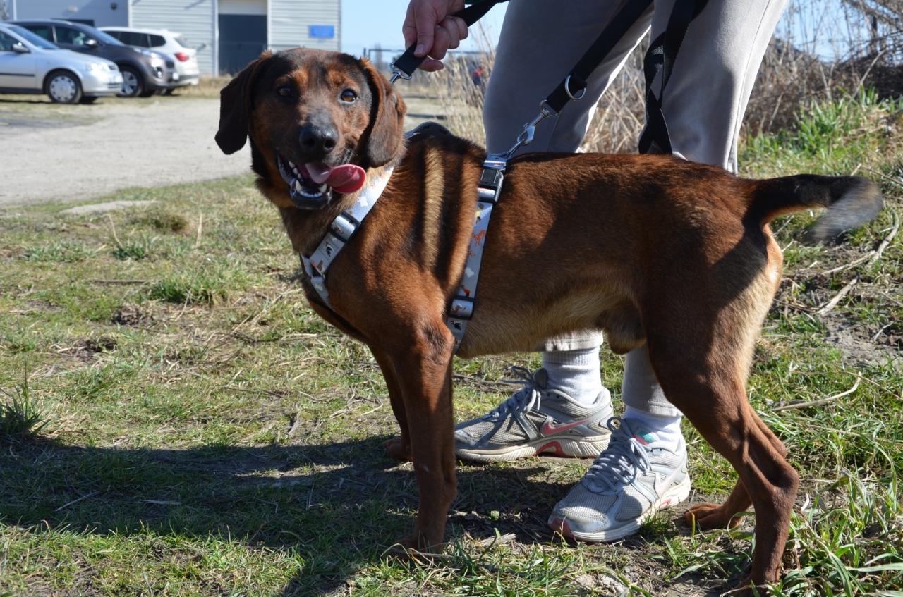 Bursztynowy słodziak o imieniu Carlos (Karlos). Jest dosyć młodym psem, szacujemy jego wiek na 3-4 lata. Trochę przypomina posokowca, waży 15-20 kg i śmiało można go określić psem średniego rozmiaru.