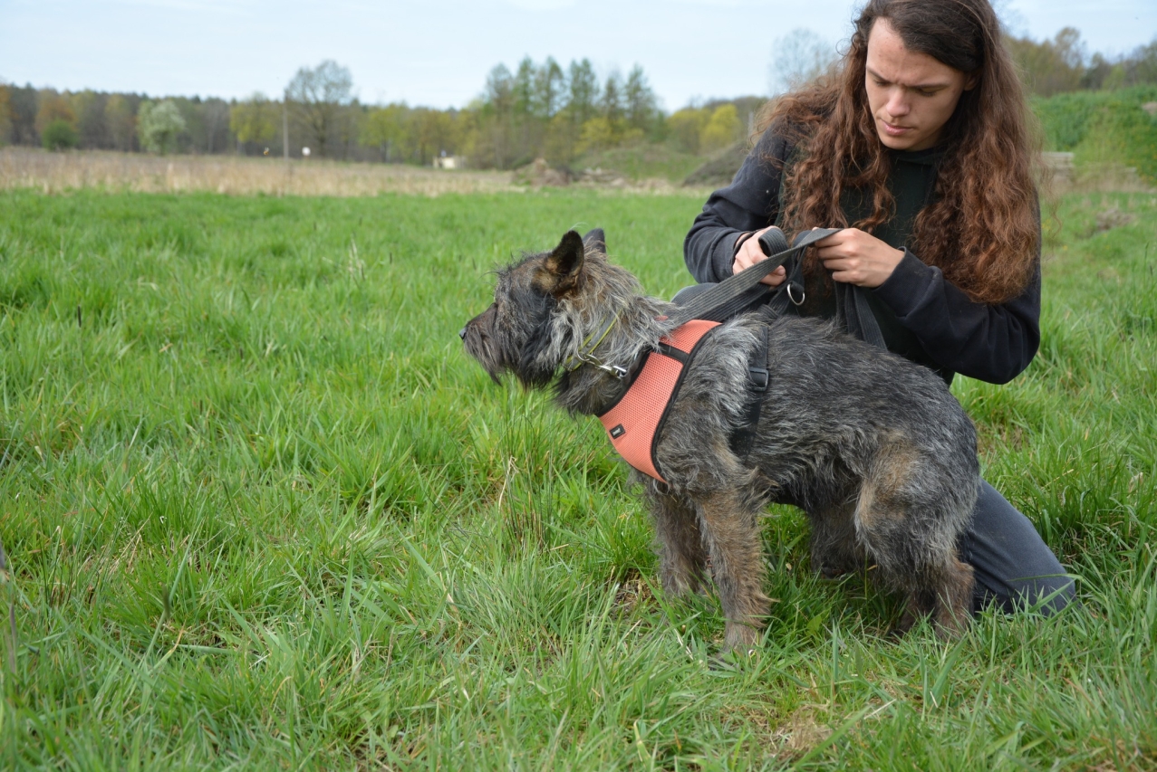 Szukam domu bez malutkich dzieci, w spokojnej atmosferze i w domu lub mieszkaniu w spokojnej okolicy. Na razie na smyczy próbuję uciec i schować się gdzieś, ale powoli nad tym pracujemy.