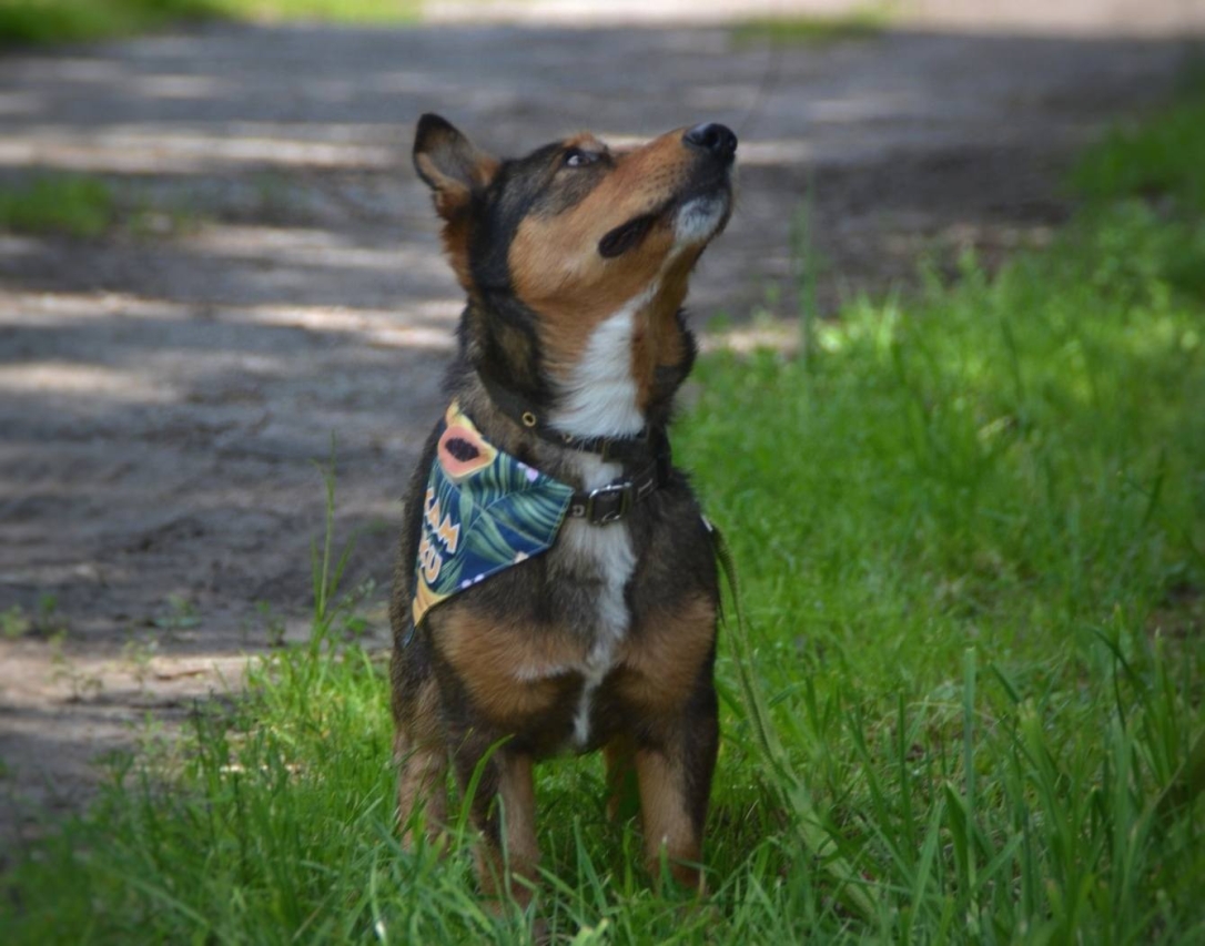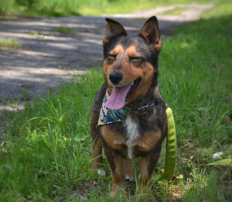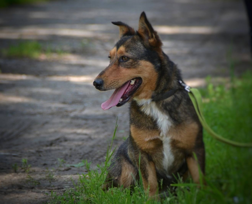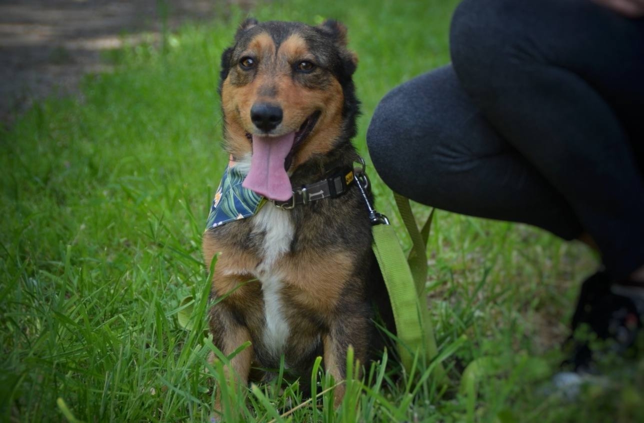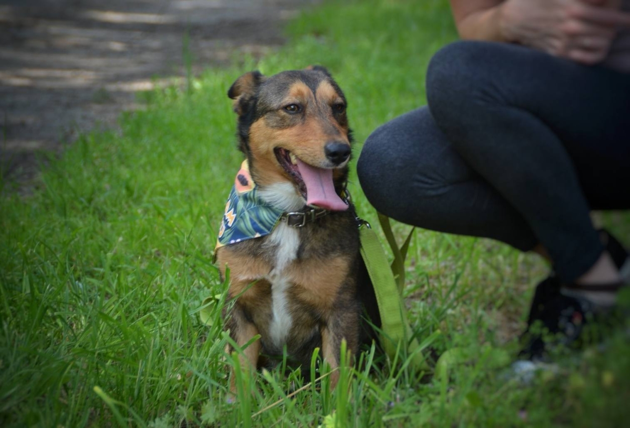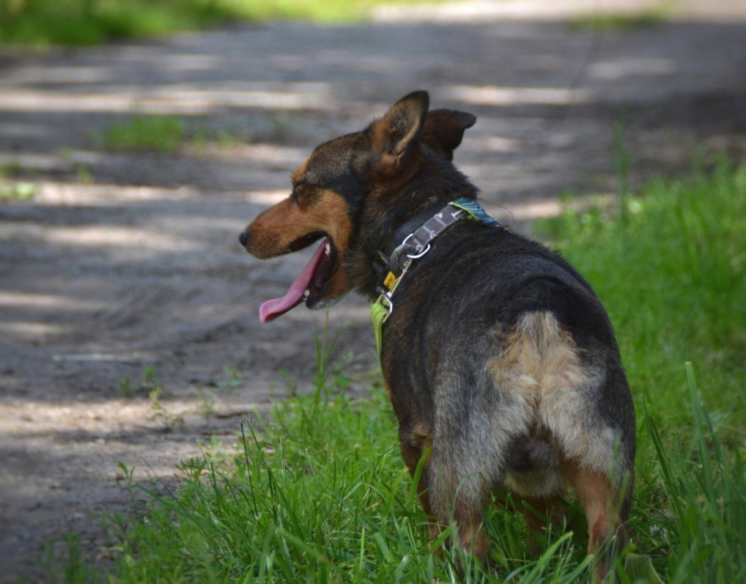 Spaceruje grzecznie - dostosowując tempo do opiekuna, lubi drapanie za uszkiem, głaskanie, pozwala się wyczesać, jest materiałem na wspaniałego, domowego pupila.